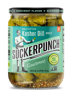 Inspired by Chicago's legendary Jewish delis, our Deli-Style Kosher Dill Wholes deliver authentic garlicky pickle perfection. Made with premium pickling cucumbers, kosher salt, garlic cloves, and fresh dill, these crunchy pickles separate real deli pickles from grocery store pretenders. Using time-honored pickle recipes and our... See More