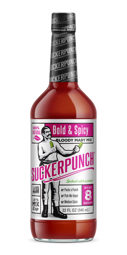 Whether you’re crafting your own homemade Bloody Mary or spicing things up with a Bloody Maria, this mix delivers a perfect balance of heat, acidity, and briny bite. Our mix pairs perfectly with your favorite garnishes: add a dill pickle spear, lemon wedge, or a baby tomato and experience the greatness of a loaded Suckerpunch Bloody Mary. Side note: this mix also makes a perfect marinade for meats or a punchy addition to your favorite sauce!